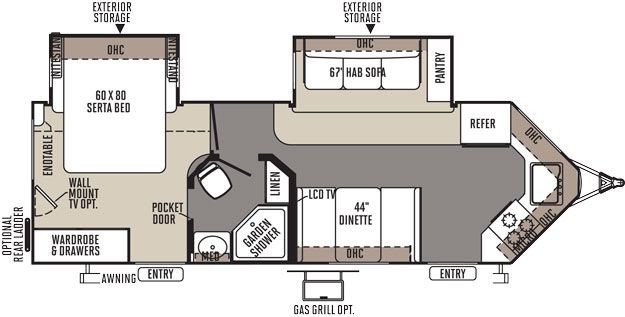 This Forest River Rockwood Travel Trailer is brand new, weighs 6430 (dry), has a "2618w" floorplan, and is available to you at your family RV dealer Holden in Holden, LA.