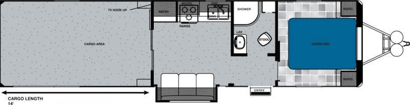 Because of the cargo space in the rear, the living area is not as spacious as in other types of RVs. But they do offer the same features and amenities as in travel trailers, including cooking, dining, sleeping and bath/toilet facilities. And most units have pull-down bunks in the cargo area for additional sleeping facilities while at camp.