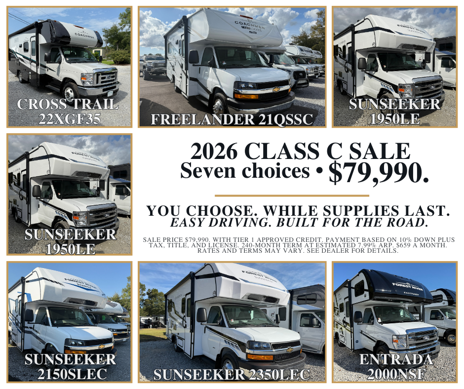 Our knowledgeable sales and service personnel and very competitive financing packages will get you into that dream RV you and your family have always wanted. Each RV must pass a rigorous, 4-hour pre-delivery inspection (PDI) before it is driven off the lot. After the PDI a technician will spend from 45 minutes to an hour teaching you how to use your new RV. You and your family will be able to go RVing immediately!