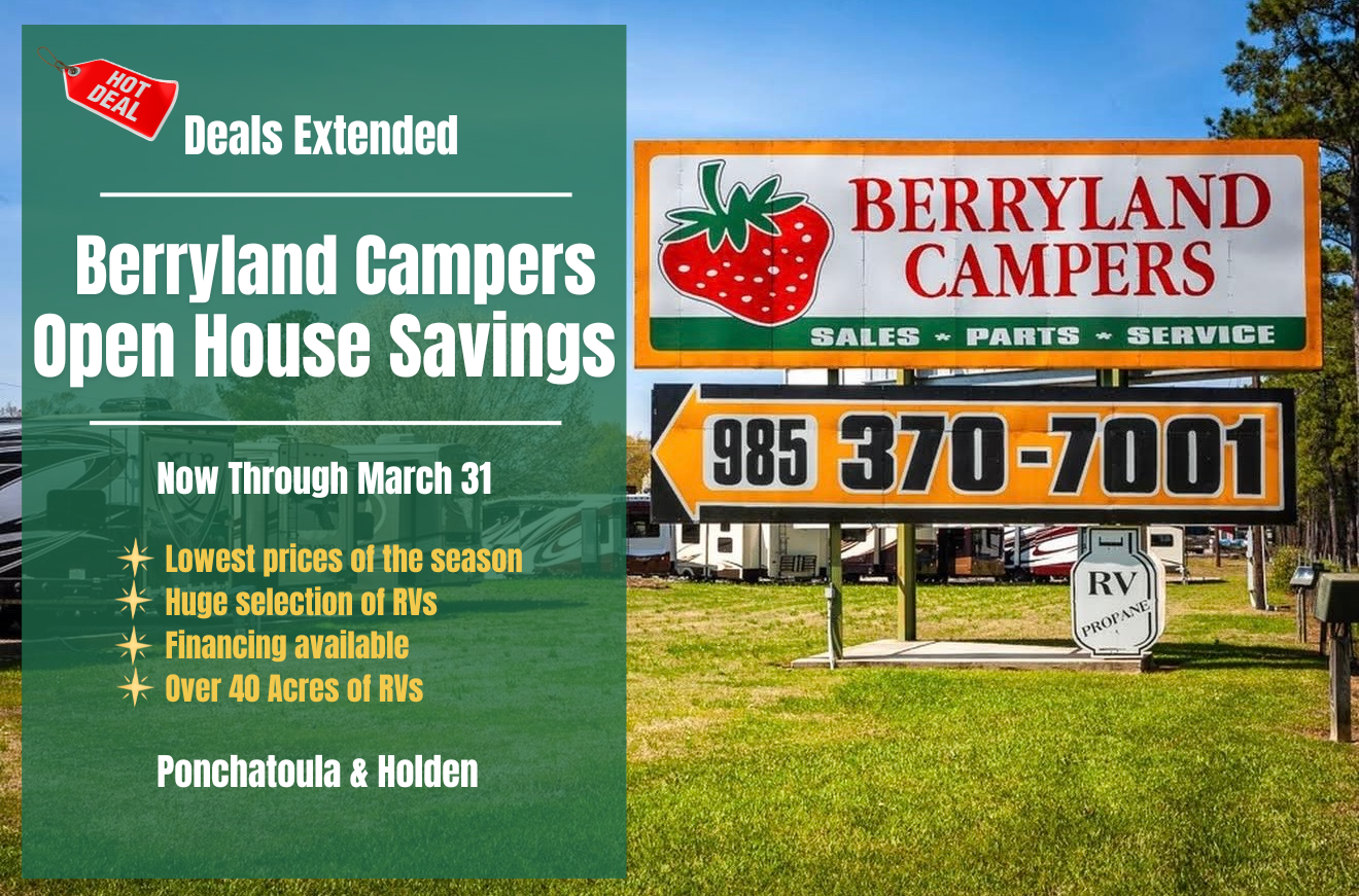 We have RVers from all over come to shop at Berryland Campers including happy campers from Lafayette, Houma, New Orleans, Baton Rouge, Houston, and many more cities.