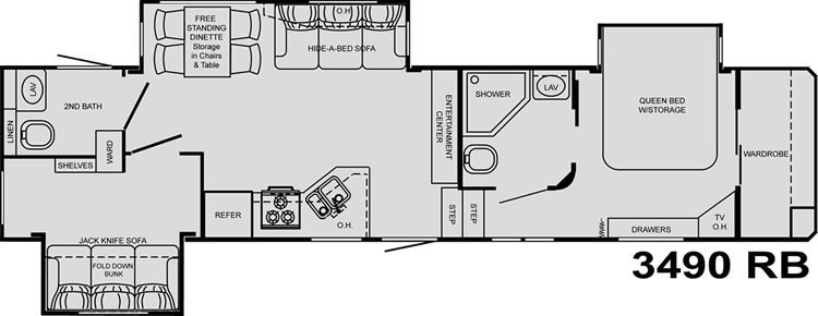 This Heartland Big Country Fifth Wheel is brand new, is 34ft 0in long, has a "3490rb" floorplan, and is available to you at your family RV dealer Holden in Holden, LA.