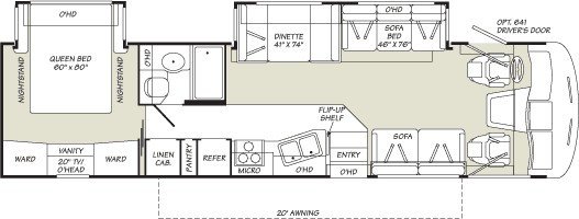 The RV for sale is a New 3907 Fleetwood Southwind Class A Gas by Fleetwood RV that is room enough for 4 RV-ers to sleep, has Ford chassis,is equipped with a tough fiberglass construction type, and has 2 spacious slides.