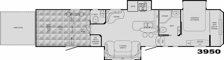 This Heartland Cyclone Travel Trailer is 39ft 0in long, has a "3950" floorplan, is brand new, and is available to you at your family RV dealer Holden in Holden, LA.