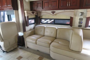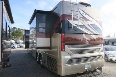 The RV for sale is a Used 2010 American Tradition Standard Class A Diesel by American Tradition RV that and has a slide.
