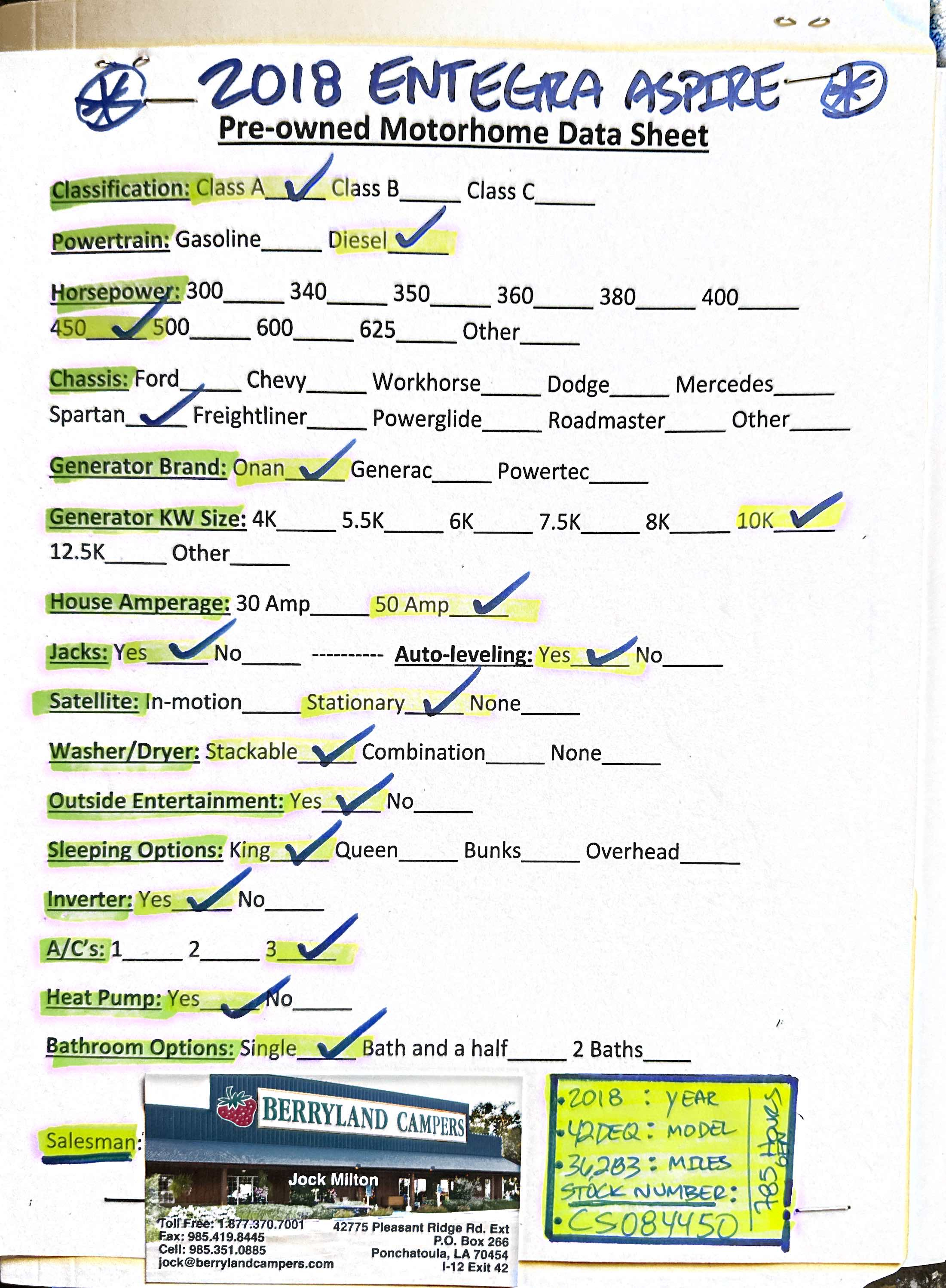 The RV for sale is a Used 2018 Aspire Class A Diesel by Entegra RV that and much more.