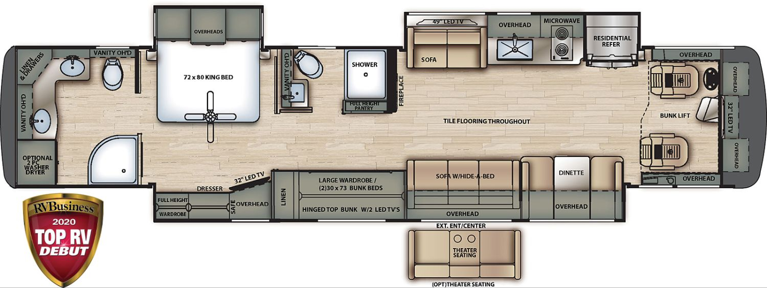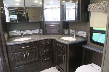 This Berkshire Xlt Class A Diesel has only 2507 miles, is 44ft 10in long, has a "45ca" floorplan, weighs 34393 (dry), is in great condition and is available to you at your family RV dealer Ponchatoula in Ponchatoula, LA.