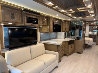 This Dutch Star 4081 Class A Diesel has a "4081" floorplan, has only 1031 miles, weighs 38264 (dry), is in great condition and is available to you at your family RV dealer Ponchatoula in Ponchatoula, LA.