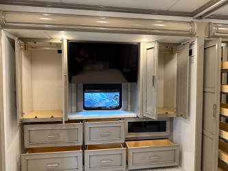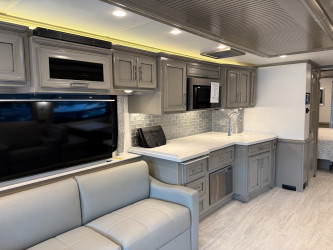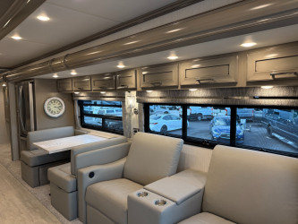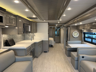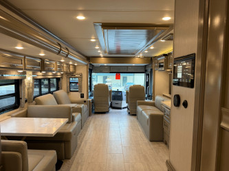 This Ventana 4369 Class A Diesel runs on diesel, weighs 37783 (dry), has only 1033 miles, has a "4369" floorplan, is in great condition and is available to you at your family RV dealer Ponchatoula in Ponchatoula, LA.