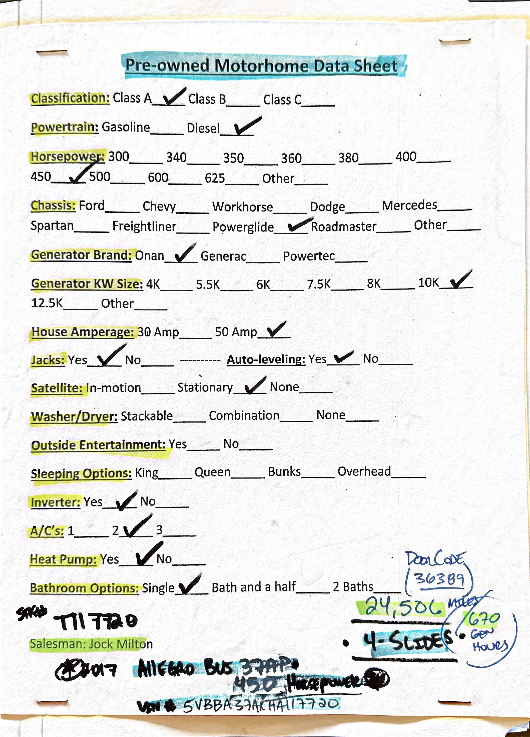 The RV for sale is a Used 2017 Allegro Bus Class A Diesel by Tiffin RV that and much more.