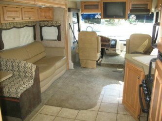 On the road in a Class A is incredibly comfortable. The Class A provides a smooth and stable ride and is easy to drive. Passengers enjoy the ride as well, as they are able to eat, watch TV, play games or even take a nap. Use of the bathroom is also available.
