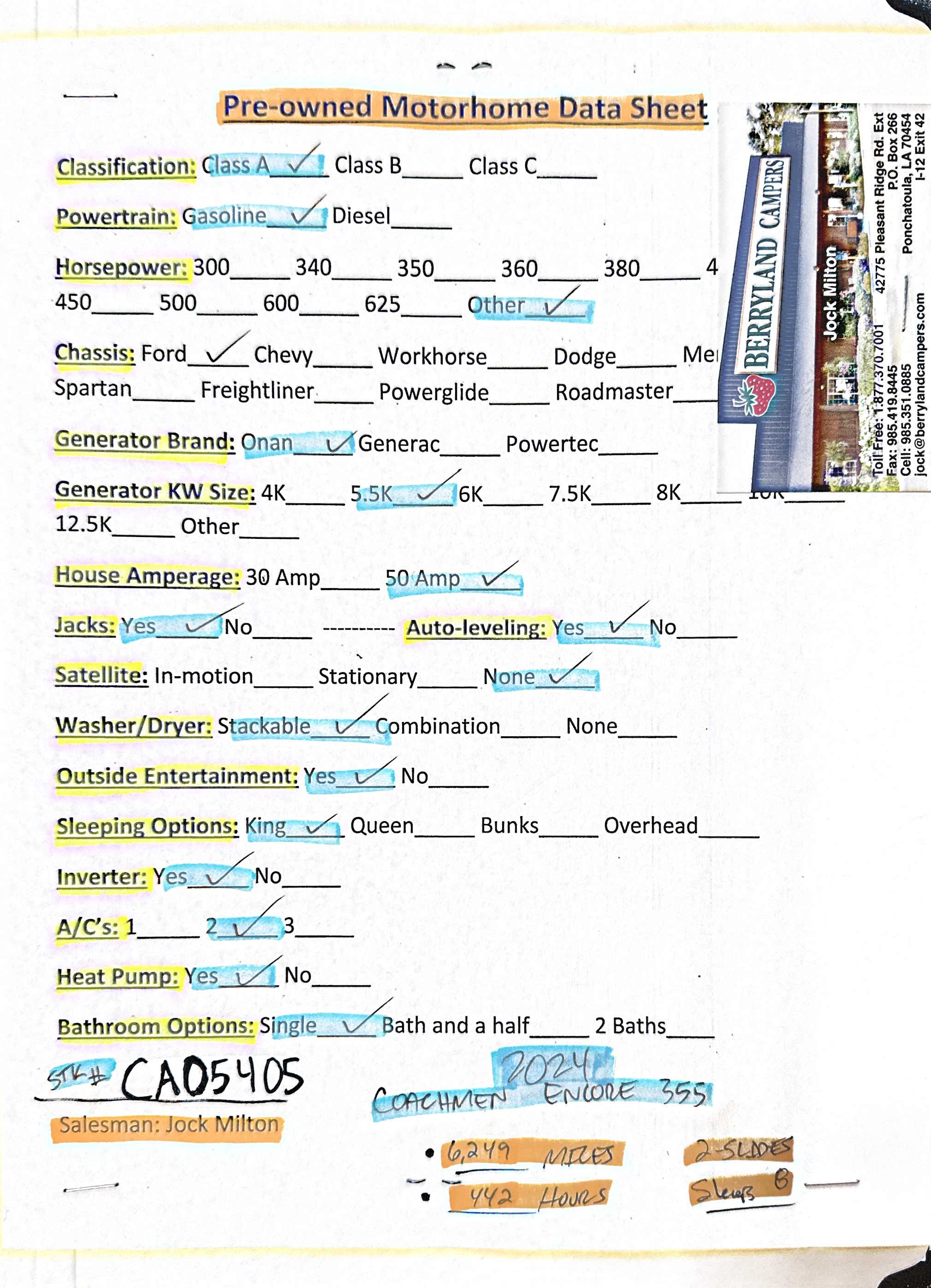 This Encore Standard Class A Gas has only 6 miles, has a "355" floorplan, is 36ft 0in long, runs on gas, is in great condition and is available to you at your family RV dealer Ponchatoula in Ponchatoula, LA.