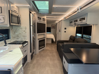 This Encore 335fsf Class A Gas is 35ft 4in long, has a "335fsf" floorplan, is in great condition runs on gas, weighs 17788 (dry), and is available to you at your family RV dealer Ponchatoula in Ponchatoula, LA.