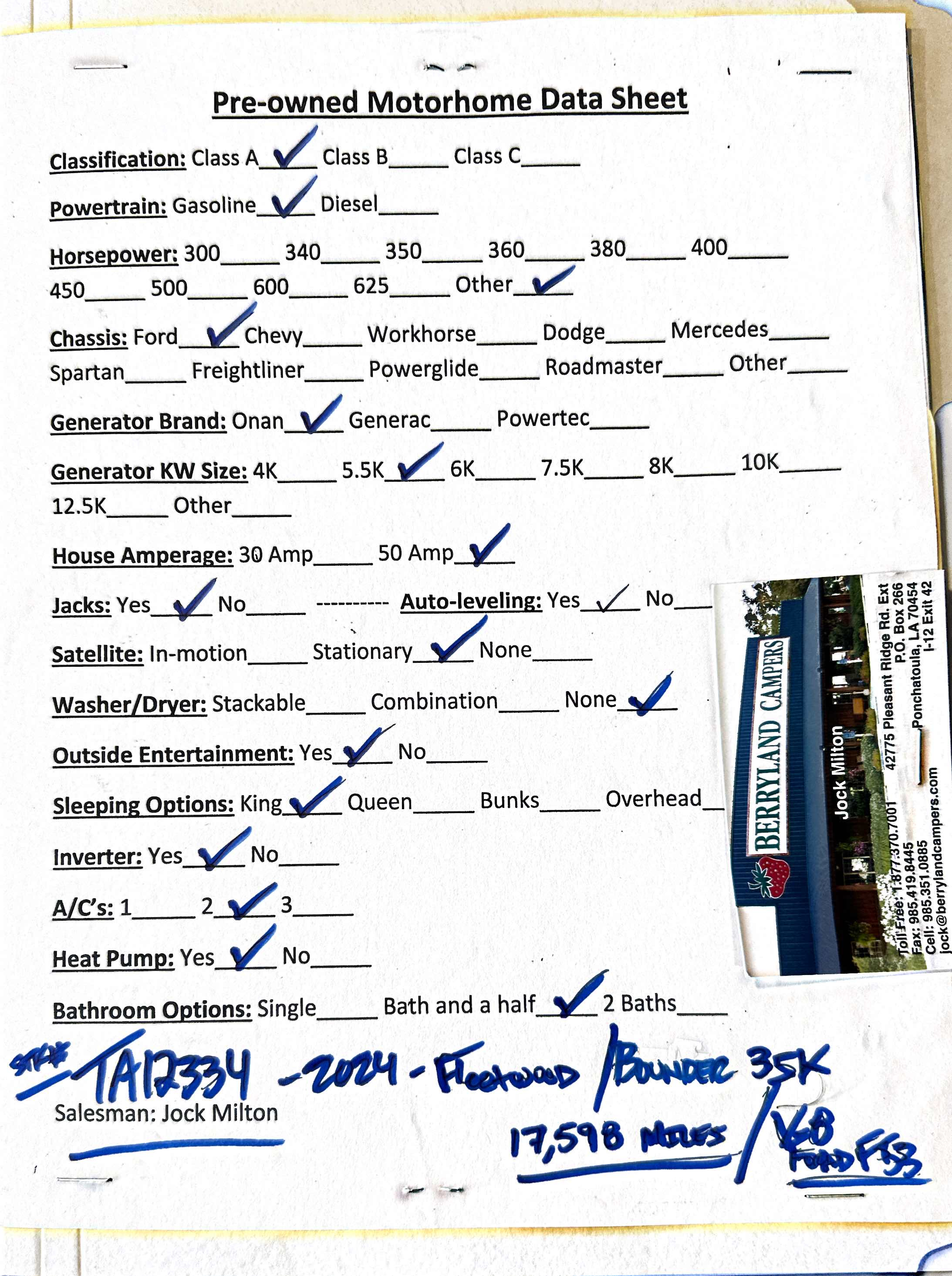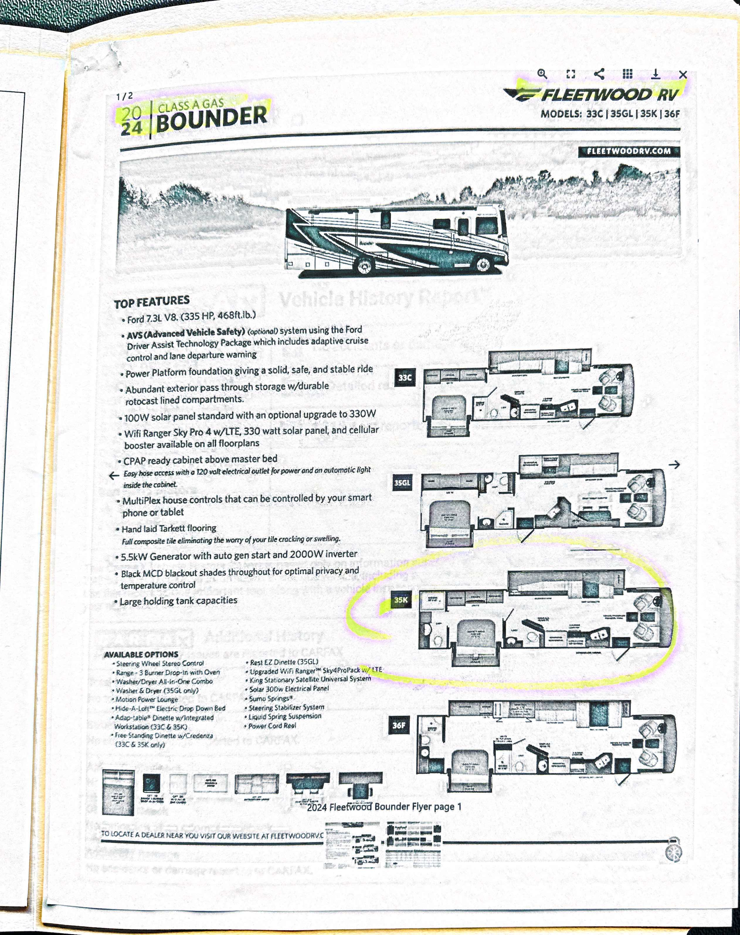 The RV for sale is a Used 2024 Bounder Class A Gas by Fleetwood RV that and much more.