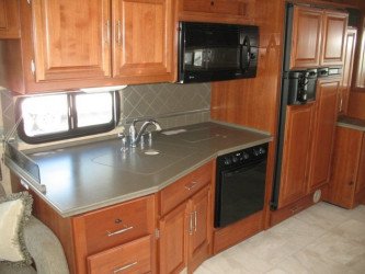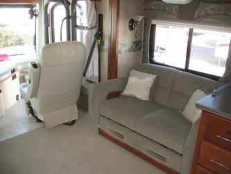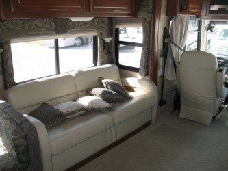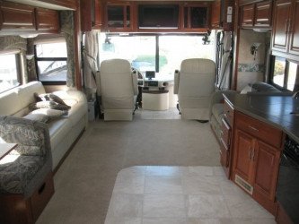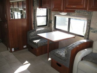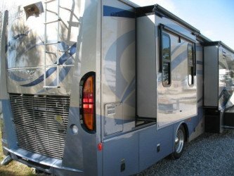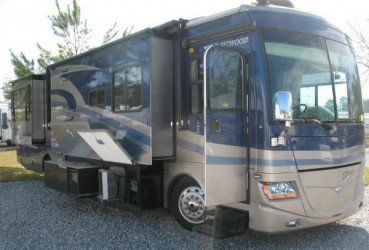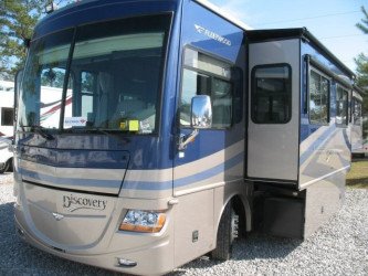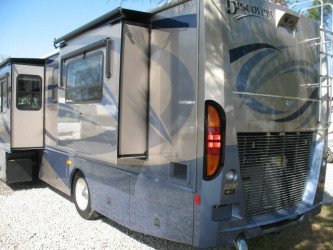 The RV for sale is a Used 3907 Fleetwood Discovery Class A Gas by Fleetwood RV that is equipped with a tough fiberglass construction type, is room enough for 6 RV-ers to sleep, has Freightliner chassis,and has 4 spacious slides.