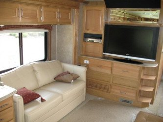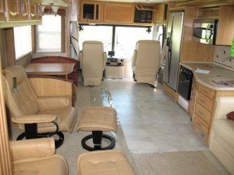 If you're looking for the ultimate in comfort while on the road, then the Class A Motorhome is for you. It has all the amenities of home in a self-contained unit. With features like a big refrigerator, oven/microwave, TV/VCR (2 in most units), satellite dish, bath facilities, bigger batteries, large water and holding tanks, generous propane supply, on-board generator and ample living space, the livability of a larger Class A is exceptional. These features also make these units especially good for "dry" camping, where hookups are not available.