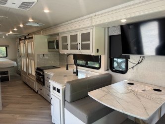 This Flex 34j Class A Gas has only 5906 miles, has a "34j" floorplan, is 36ft 0in long, is in great condition runs on gas, and is available to you at your family RV dealer Ponchatoula in Ponchatoula, LA.