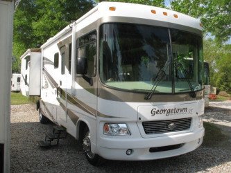 This Forest River Georgetown Class A Gas has a "350" floorplan, is brand new, runs on gas, is 35ft 0in long, has only 9270 miles, and is available to you at your family RV dealer Ponchatoula in Ponchatoula, LA.