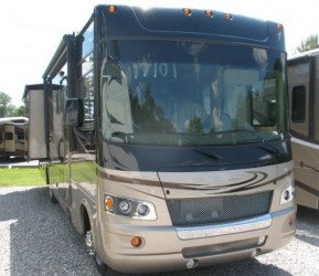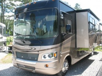 The RV for sale is a New 3911 Forest River Georgetown Class A Gas by Forest River RV that is room enough for 6 RV-ers to sleep, has Ford chassis,is equipped with a tough fiberglass construction type, and has 3 spacious slides.