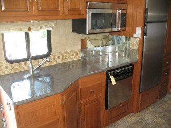 If you're looking for the ultimate in comfort while on the road, then the Class A Motorhome is for you. It has all the amenities of home in a self-contained unit. With features like a big refrigerator, oven/microwave, TV/VCR (2 in most units), satellite dish, bath facilities, bigger batteries, large water and holding tanks, generous propane supply, on-board generator and ample living space, the livability of a larger Class A is exceptional. These features also make these units especially good for "dry" camping, where hookups are not available.