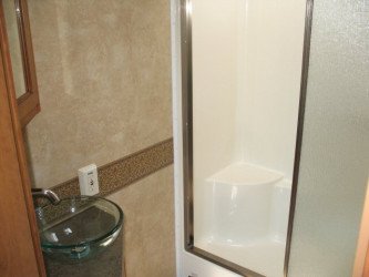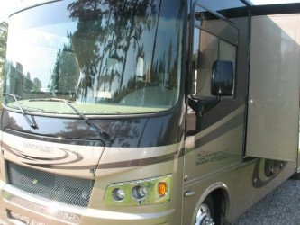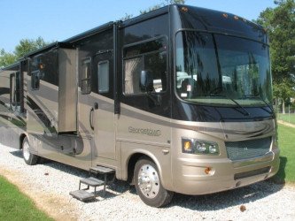 The RV for sale is a New 3910 Forest River Georgetown Class A Gas by Forest River RV that has Ford chassis,is equipped with a tough fiberglass construction type, is room enough for 6 RV-ers to sleep, and has 2 spacious slides.
