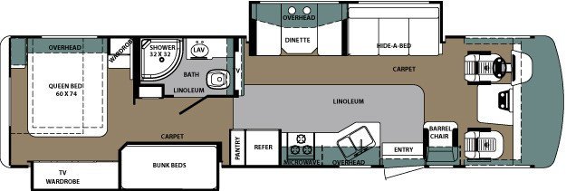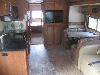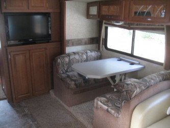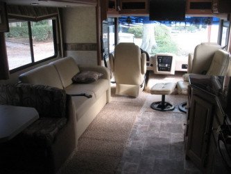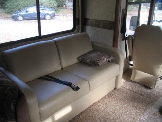 On the road in a Class A is incredibly comfortable. The Class A provides a smooth and stable ride and is easy to drive. Passengers enjoy the ride as well, as they are able to eat, watch TV, play games or even take a nap. Use of the bathroom is also available.