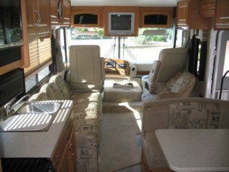 If you're looking for the ultimate in comfort while on the road, then the Class A Motorhome is for you. It has all the amenities of home in a self-contained unit. With features like a big refrigerator, oven/microwave, TV/VCR (2 in most units), satellite dish, bath facilities, bigger batteries, large water and holding tanks, generous propane supply, on-board generator and ample living space, the livability of a larger Class A is exceptional. These features also make these units especially good for "dry" camping, where hookups are not available.