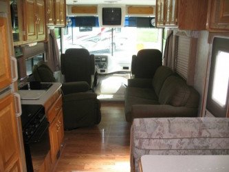 If you're looking for the ultimate in comfort while on the road, then the Class A Motorhome is for you. It has all the amenities of home in a self-contained unit. With features like a big refrigerator, oven/microwave, TV/VCR (2 in most units), satellite dish, bath facilities, bigger batteries, large water and holding tanks, generous propane supply, on-board generator and ample living space, the livability of a larger Class A is exceptional. These features also make these units especially good for "dry" camping, where hookups are not available.