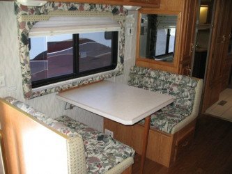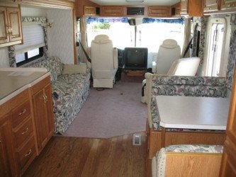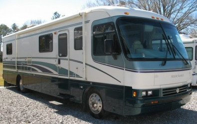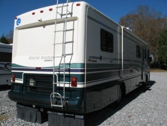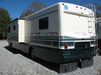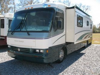 The RV for sale is a Used 3897 Holiday Rambler Endeavor Class A Gas by Holiday Rambler RV that is equipped with a tough aluminum construction type, is room enough for 6 RV-ers to sleep, has Freightliner chassis, and has a slide.