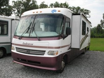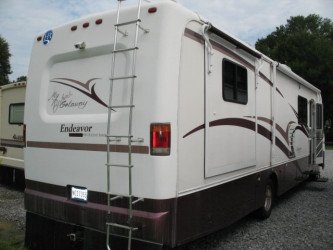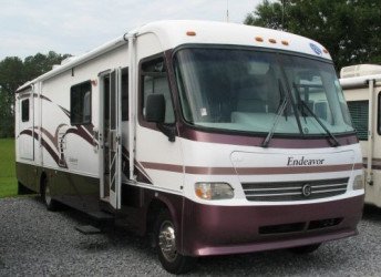 The RV for sale is a Used 3900 Holiday Rambler Endeavor Class A Gas by Holiday Rambler RV that has Ford chassis,is room enough for 6 RV-ers to sleep, is equipped with a tough fiberglass construction type, and has 2 spacious slides.