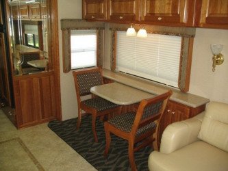 The RV for sale is a Used 3906 Holiday Rambler Imperial Class A Gas by Holiday Rambler RV that has Roadmaster chassis,is equipped with a tough fiberglass construction type, is room enough for 6 RV-ers to sleep, and has 4 spacious slides.