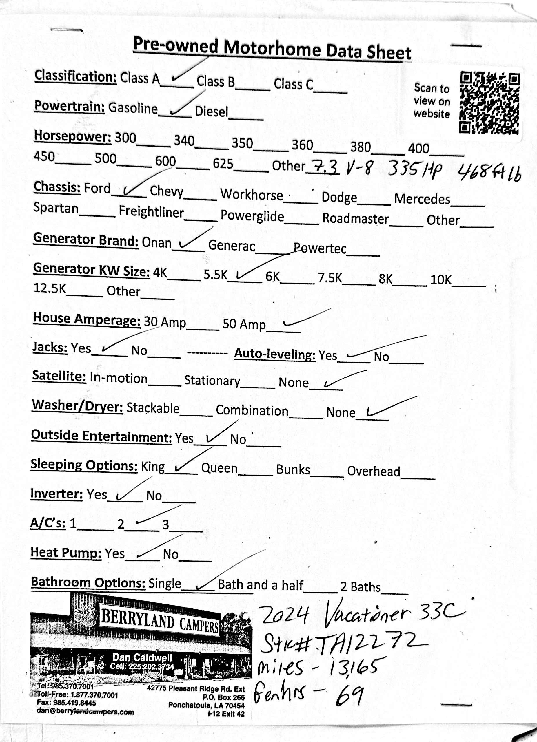 UNIT SPECIALIST Call 1-(985) 370-7001 and ask for Dan C, the specialist on this Holiday Rambler Vacationer for sale. Ask about the Class A Gas RV for sale with a stock # TA12272.