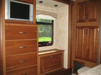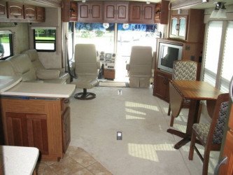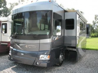 The RV for sale is a Used 3906 Itasca By Winnebago Ellipse Class A Gas by Itasca By Winnebago RV that is room enough for 4 RV-ers to sleep, is equipped with a tough fiberglass construction type, and has 4 spacious slides.