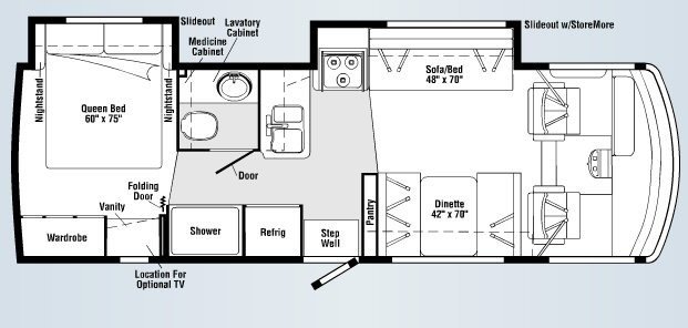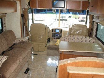 If you're looking for the ultimate in comfort while on the road, then the Class A Motorhome is for you. It has all the amenities of home in a self-contained unit. With features like a big refrigerator, oven/microwave, TV/VCR (2 in most units), satellite dish, bath facilities, bigger batteries, large water and holding tanks, generous propane supply, on-board generator and ample living space, the livability of a larger Class A is exceptional. These features also make these units especially good for "dry" camping, where hookups are not available.