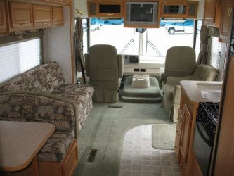 If you're looking for the ultimate in comfort while on the road, then the Class A Motorhome is for you. It has all the amenities of home in a self-contained unit. With features like a big refrigerator, oven/microwave, TV/VCR (2 in most units), satellite dish, bath facilities, bigger batteries, large water and holding tanks, generous propane supply, on-board generator and ample living space, the livability of a larger Class A is exceptional. These features also make these units especially good for "dry" camping, where hookups are not available.*****SOLD*****