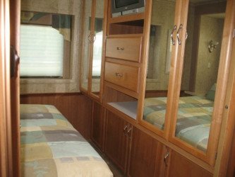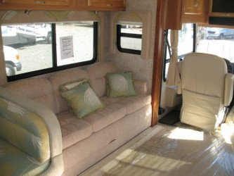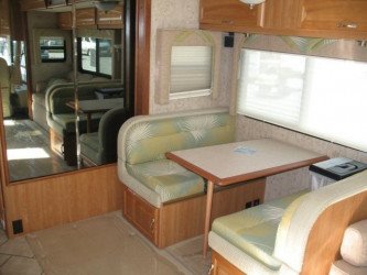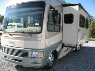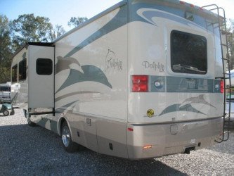The RV for sale is a Used 3907 National Rv Dolphin Class A Gas by National Rv RV that is room enough for 4 RV-ers to sleep, has Ford chassis,is equipped with a tough fiberglass construction type, and has 2 spacious slides.