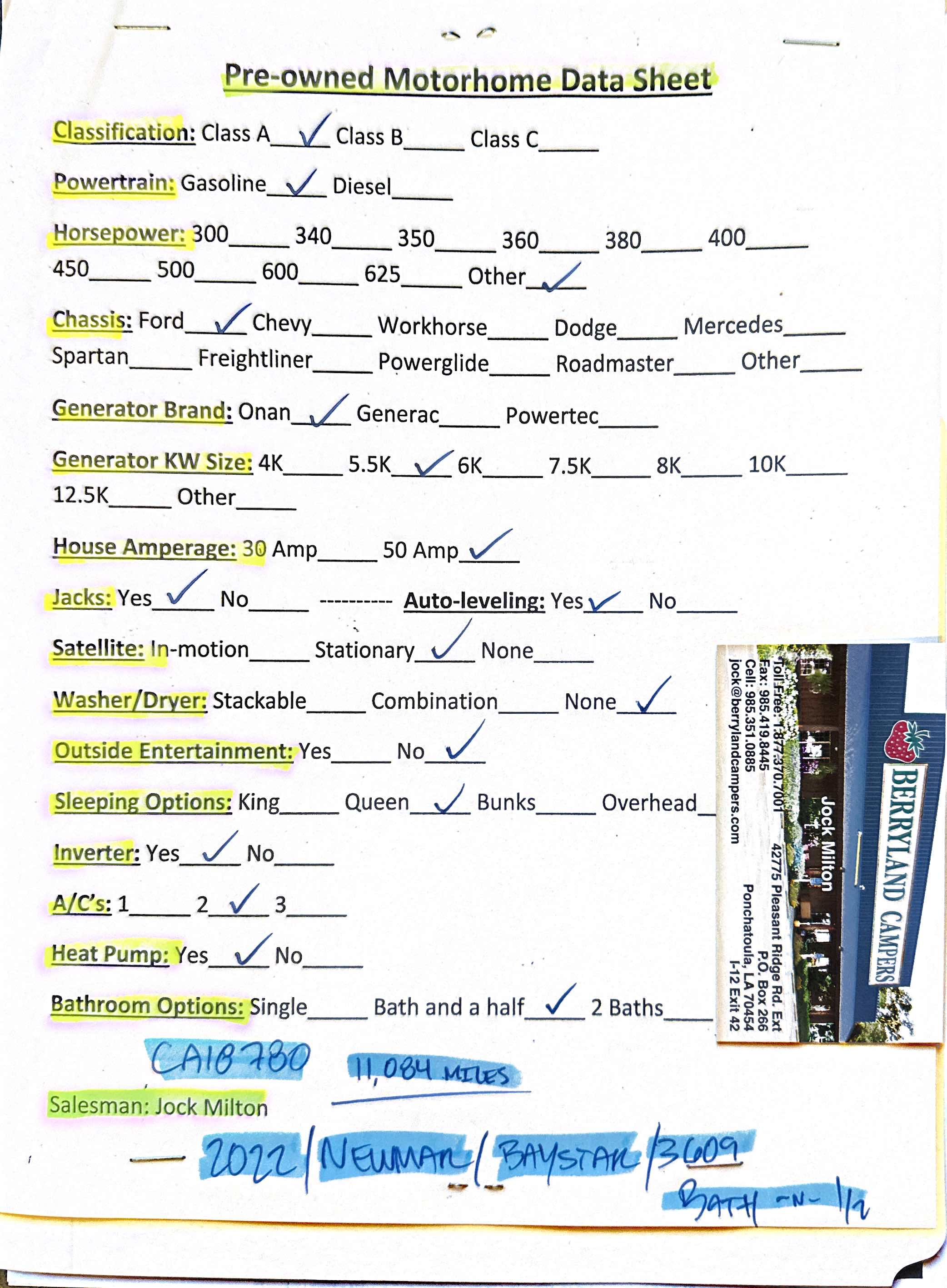 The RV for sale is a Used 2022 Bay Star Class A Gas by Newmar RV that and much more.