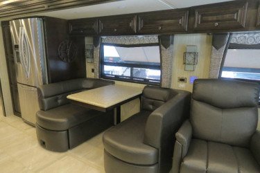 The RV for sale is a New 3917 Newmar Dutch Star Class A Gas by Newmar RV that is room enough for 6 RV-ers to sleep, is equipped with a tough fiberglass construction type, has Freightliner chassis,and has 3 spacious slides.