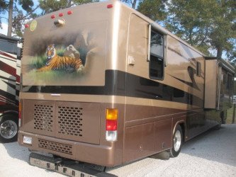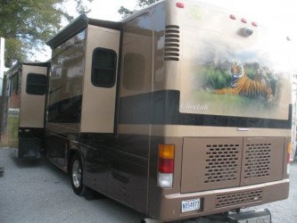 The RV for sale is a Used 3904 Safari Cheetah Class A Gas by Safari RV that has Roadmaster chassis,is room enough for 4 RV-ers to sleep, is equipped with a tough fiberglass construction type, and has 2 spacious slides.