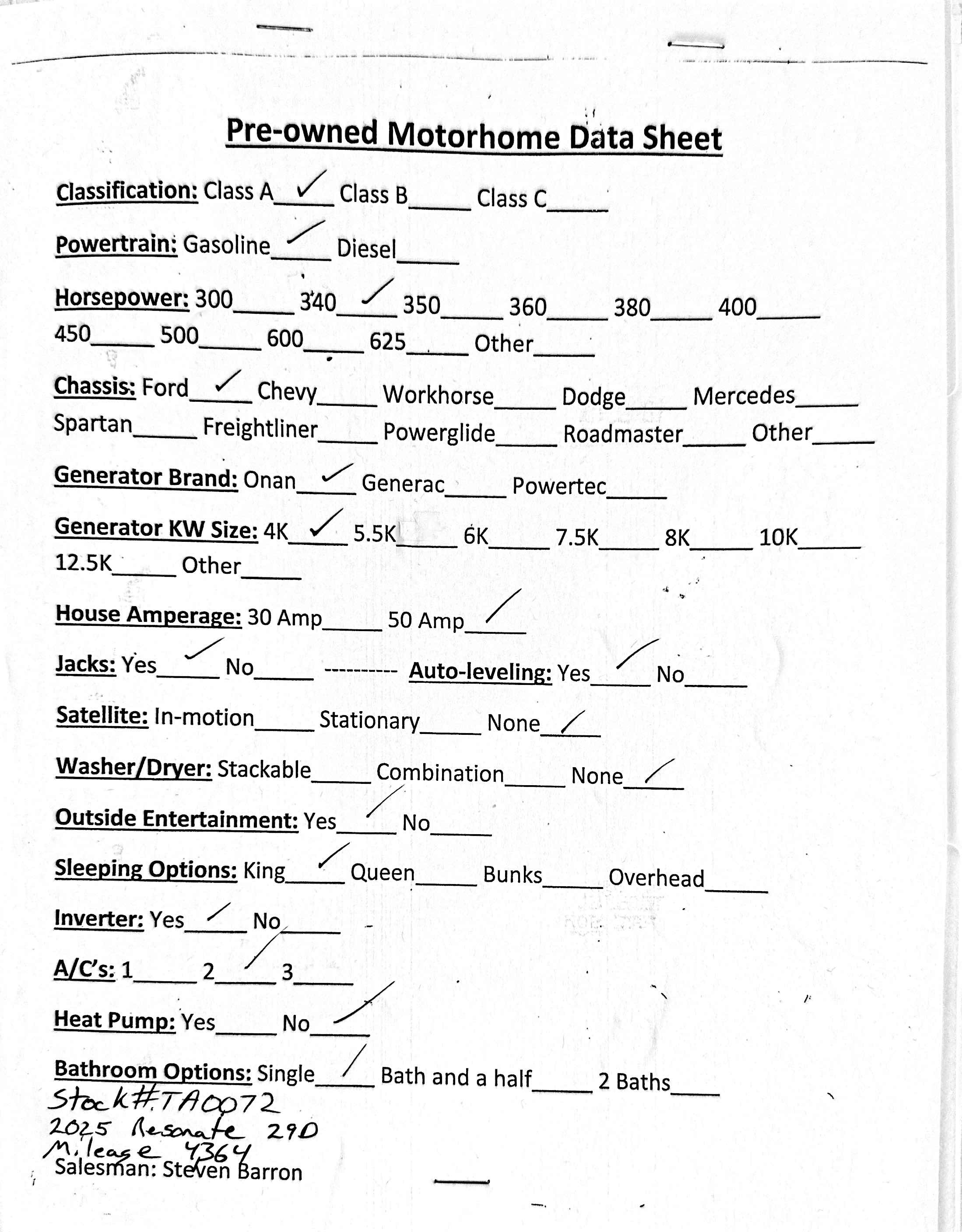 This Resonate Standard Class A Gas has only 4363 miles, is in great condition is 29ft 0in long, and is available to you at your family RV dealer Ponchatoula in Ponchatoula, LA.