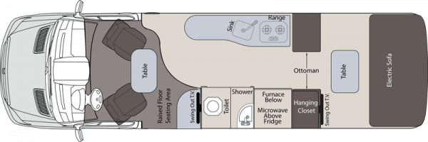 The Class B motorhome is small and easy to handle, but big enough for you to move around. It has space to stretch your legs, a full kitchen, and a bathroom with a shower. Even better, Class B motorhomes also come with an entertainment center.