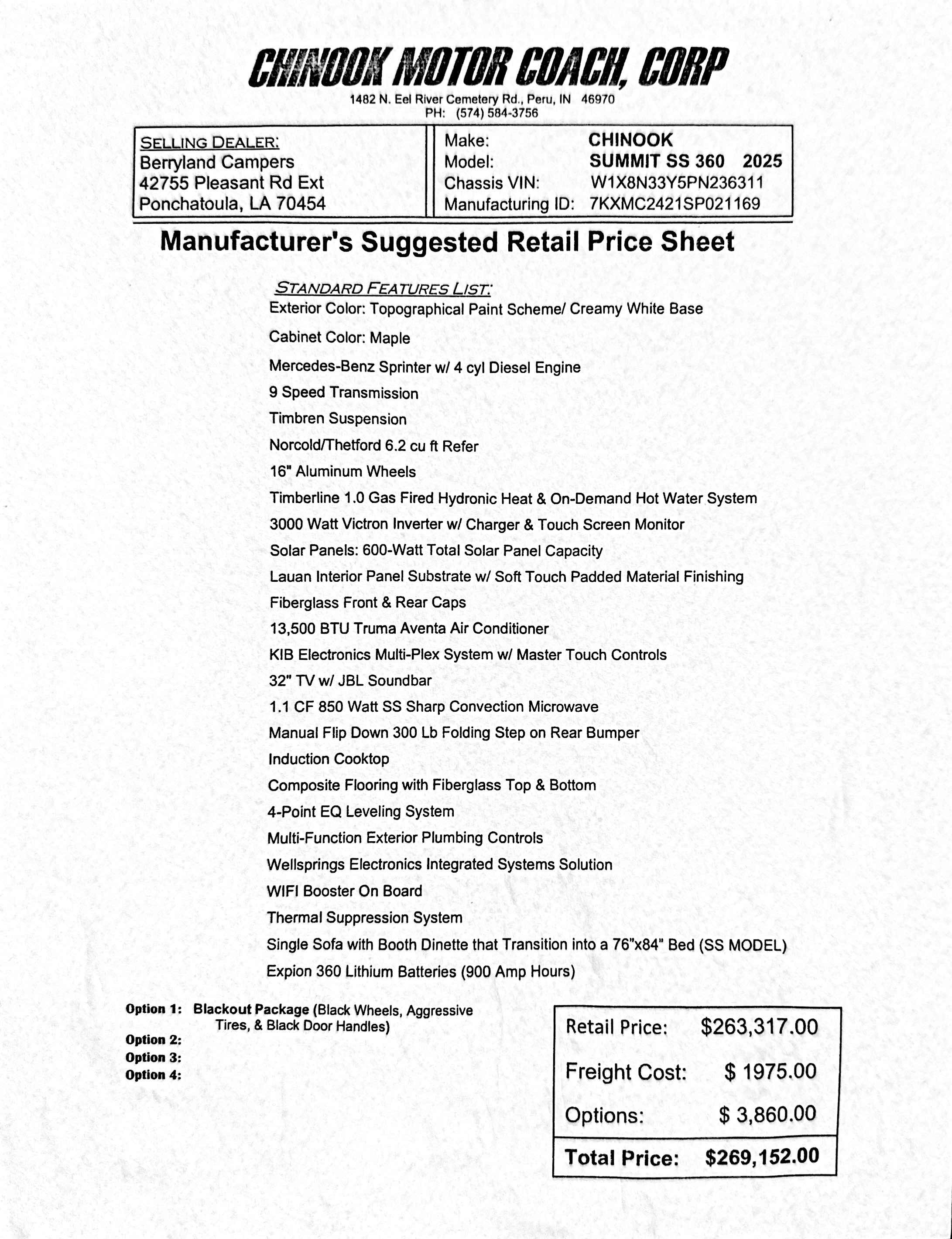 UNIT SPECIALIST Call 1-(985) 370-7001 and ask for Dan C, the specialist on this Chinook Summit for sale. Ask about the Class B RV for sale with a stock # N236311.