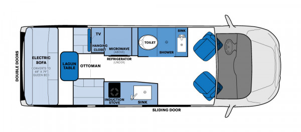 The Class B motorhome is small and easy to handle, but big enough for you to move around. It has space to stretch your legs, a full kitchen, and a bathroom with a shower. Even better, Class B motorhomes also come with an entertainment center.