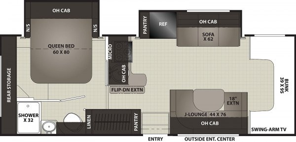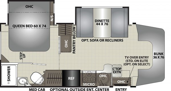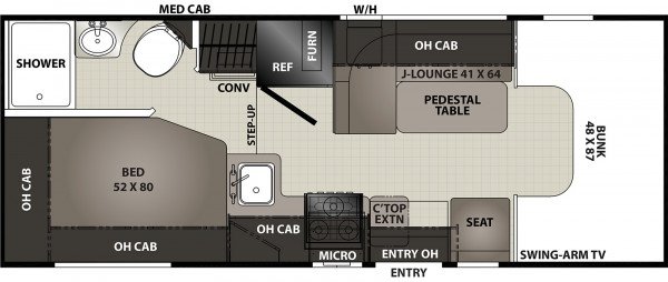 There is also less space to heat and cool, and you can access the living area while driving, making traveling a breeze when you need a snack or to stretch your legs. Along with living space, Coachmen Class C motorhomes have plenty of storage space, so you can pack all the necessities for an extended vacation. Our Class C motorhomes are equipped with the following amenities: