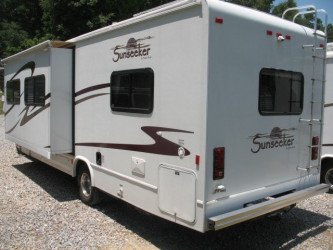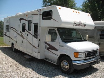 The RV for sale is a Used 3906 Forest River Sunseeker Class C by Forest River RV that is equipped with a tough fiberglass construction type, has Ford chassis,is room enough for 6 RV-ers to sleep, and has a slide.