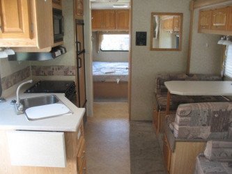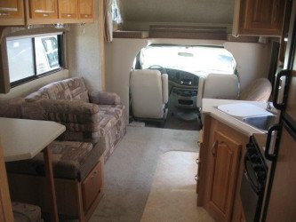 The Class C motorhome has a distinctive cab-over bunk that makes this RV easy to recognize. Built on a commercial cut-away van chassis Class Cs have evolved tremendously over the years. With all the amenities of any motorhome, they are available in various lengths, many with slide-out rooms and packed with extras.