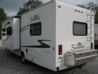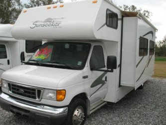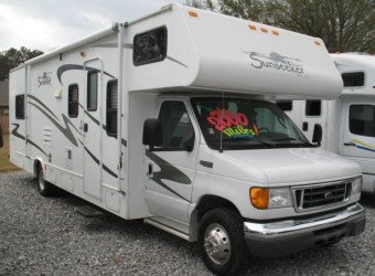 The RV for sale is a Used 3905 Forest River Sunseeker Class C by Forest River RV that is room enough for 6 RV-ers to sleep, has Ford chassis,is equipped with a tough fiberglass construction type, and has a slide.