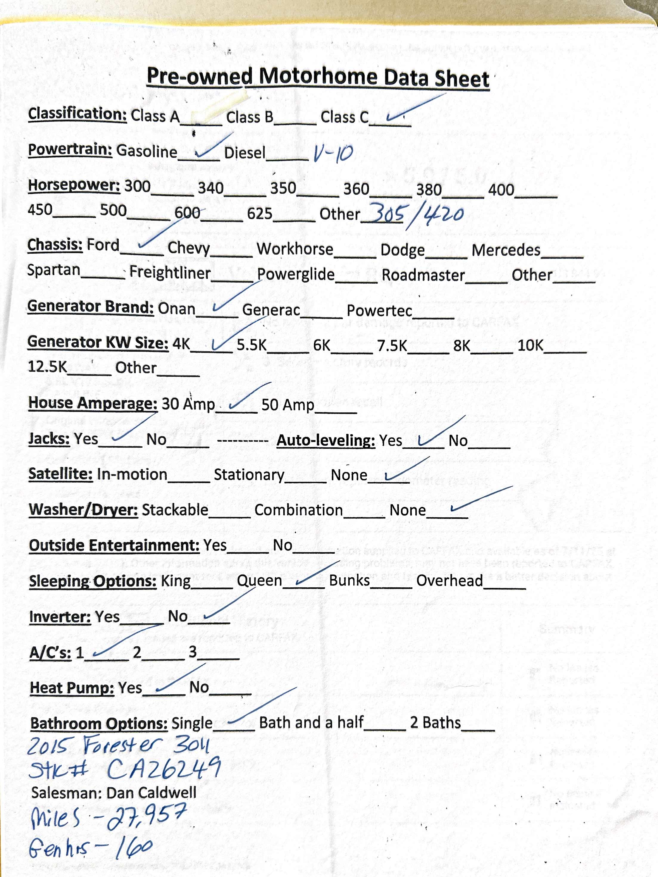 This Forester Standard Class C has only 27 miles, has a "3011ds" floorplan, is 31ft 0in long, runs on gas, is in great condition and is available to you at your family RV dealer Ponchatoula in Ponchatoula, LA.