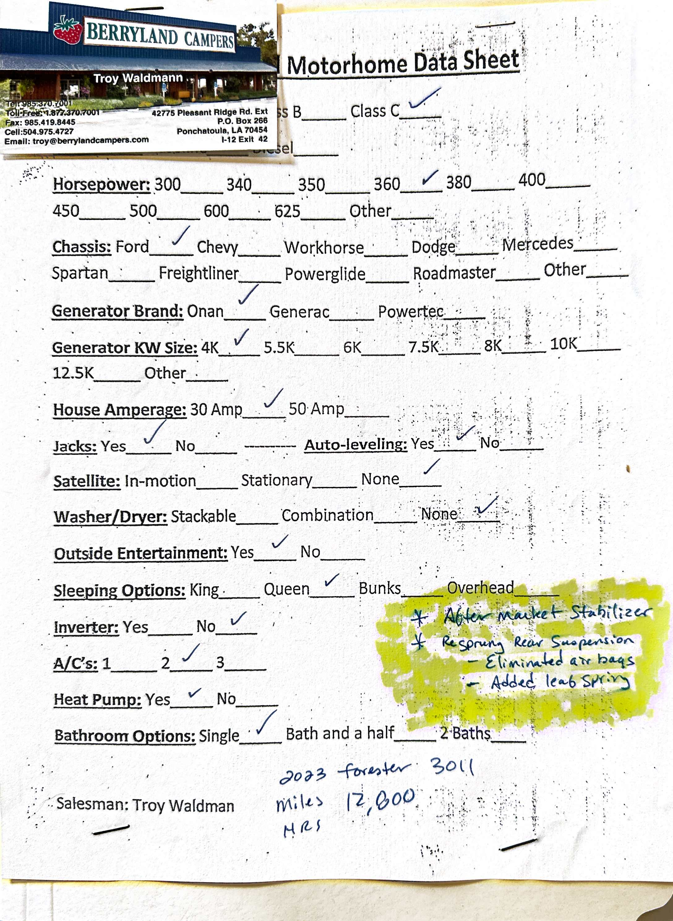 This Forester Standard Class C is 31ft 0in long, has a "3011ds" floorplan, is in great condition has only 12921 miles, and is available to you at your family RV dealer Ponchatoula in Ponchatoula, LA.