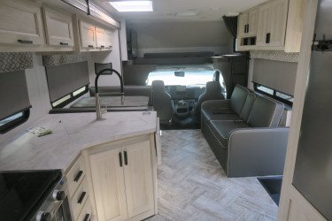 The RV for sale is a New 2022 Forester Standard Class C by Forest River RV that and has a slide.