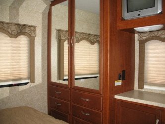 The RV for sale is a New 3908 Thor Chateau Class C by Thor RV that is room enough for 4 RV-ers to sleep, is equipped with a tough fiberglass construction type, has Ford chassis,and has 2 spacious slides.